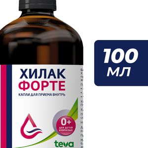 Показания к применению нарушение физиологической флоры тонкого и толстого кишечника (во время и после лечения антибиотиками или сульфаниламидами лучевой терапии), синдром недостаточности пищеварения, диспепсии, диарея, метеоризм, запоры, гастроэнтерит, колит, синдром старческого кишечника (хронические атрофические гастроэнтериты), расстройства со стороны желудочнокишечного тракта, вызванные сменой климата, гипо- и анацидные состояния, энтерогенные заболевания желчного пузыря и печени, аллергические кожные заболевания (крапивница эндогенно обусловленная хроническая экзема), сальмонеллез в стадии реконвалесценции (в том числе детей грудного возраста). Применение при беременности и кормлении грудьюПрименение препарата Хилак форте в период беременности и лактации считается безопасным. Однако решение о назначении препарата принимает лечащий врач.Противопоказания гиперчувствительность к компонентам препарата, дефицит лактазы/изомальтазы, непереносимость лактозы, глюкозогалактозная мальабсорбция. Побочное действиеХилак форте хорошо переносится больными любого возраста. Побочные действия до настоящего времени не наблюдались. Возможны аллергические реакции (кожная сыпь зуд крапивница), запор, диарея.Состав100 мл препарата (без вкуса/со вкусом вишни) содержат: Действующие вещества: водный субстрат продуктов обмена веществ Escherichia coli DSM 4087* — 24.9481 г, водный субстрат продуктов обмена веществ Enterococcus faecalis DSM 4086* — 12.4741 г, водный субстрат продуктов обмена веществ Lactobacillus acidophilus DSM 4149* — 12.4741 г, водный субстрат продуктов обмена веществ Lactobacillus helveticus DSM 4183* — 49.896 ,г. * — субстраты содержат лактозу вспомогательные вещества: динатрия фосфат гептагидрат — 1.159 ,г, дикалия фосфат — 1.265 ,г, молочная кислота — 2.5-6.25 г, фосфорная кислота концентрированная — 0.352 ,г, калия сорбат — 0.1135 г, лимонной кислоты моногидрат — 0.0322 г, натрия сахаринат — 0.02 г, натрия цикламат - ,0.2 г, ароматизатор кремовый - ,0.2 г, ароматизатор вишневый — 0.5 г, вода до 100 мл.