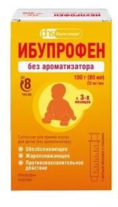 Показания к применениюСуспензию Ибупрофен для детей применяют у детей с 3 месяцев жизни до 12 лет для симптоматического лечения в качестве жаропонижающего средства при острых респираторных заболеваниях (в том числе, гриппе), детских инфекциях, других инфекционно-воспалительных заболеваниях и постпрививочных реакциях, сопровождающихся повышением температуры тела. Препарат применяют как симптоматическое обезболивающее средство при болевом синдроме слабой или умеренной интенсивности, в том числе: зубной боли, головной боли, мигрени, невралгиях, боли в ушах, боли в горле, боли при растяжении связок, мышечной боли, ревматической боли, боли в суставах. Препарат предназначен для симптоматической терапии, уменьшения боли и воспаления на момент использования, на прогрессирование заболевания не влияет.СоставСостав на 1 млДействующее вещество:ибупрофен — 20,00 мг.Вспомогательные вещества:сироп мальтитола — 422,25 мг; глицерол — 120,0 мг; камедь ксантановая — 7,0 мг; натрия цитрат — 5,09 мг; лимонной кислоты моногидрат — 4,0 мг; натрия сахаринат — 2,0 мг; натрия хлорид — 1,1 мг; домифена бромид — 0,1 мг; полисорбат 80 — 0,1 мг; вода очищенная до 1 мл.