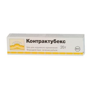 Показания к применениюГипертрофические и келоидные рубцы, возникающие после хирургических операций, ампутаций, ожогов и травмАнкилозы (контрактуры) суставовКонтрактура ДюпюитренаТравматические сухожильные контрактурыРастяжки после беременностиАтрофические рубцы (в частности, возникающие после acne или фурункулеза)Профилактика образования патологических рубцов в послеоперационном периоде или после несчастного случая Возможно применение у детей.Применение при беременности и кормлении грудьюДействие препарата при беременности и в период лактации не исследовалось.ПротивопоказанияПовышенная чувствительность к компонентам препарата, беременность, период грудного вскармливания, детский возраст до 1 года.Побочное действиеОбычно Контрактубекс переносится очень хорошо, даже при длительном применении. Чаще всего отмечались кожные реакции в месте нанесения. Классификация частоты возникновения побочных реакций: очень часто (≥1/10). часто (≥1/100 до < 1/10), нечасто (≥1/1000 до < 1/100), редко (≥1/10000 до < 1/1000), очень редко (< 1/10000), частота не установлена (в настоящее время данные о распространенности побочных реакций отсутствуют). Со стороны кожных покровов: часто: зуд, эритема, телеангиэктазия, атрофия рубца; нечасто: гиперпигментация кожи, атрофия кожи. Также сообщалось о следующих спонтанных побочных реакциях: Инфекционные заболевания: частота не установлена: пустулезные высыпания. Со стороны иммунной системы: частота не установлена: гиперчувствительность (аллергические реакции). Со стороны нервной системы: частота не установлена: парестезия. Со стороны кожных покровов: частота не установлена: крапивница, сыпь, зуд, эритема, раздражение кожи, папулы, чувство жжения, чувство натяжения, контактный дерматит. Общие расстройства и нарушения в месте нанесения: частота не установлена: отек, боль и шелушение в месте нанесения. Зуд, который является проявлением естественных процессов при формировании рубца, обычно не требует прекращения применения препарата. Если любые из указанных в инструкции побочных эффектов усугубляются, или отмечаются любые другие побочные эффекты не указанные в инструкции, следует немедленно сообщить об этом врачу.СоставДействующее вещество: Аллантоин + Гепарин натрия + Лука репчатого луковиц экстракт (Allantoin + Heparin sodium + Allii cepae squamae extract)Концентрация действующего вещества (мг): Экстракт лука 10 г, аллантоин 1 гВзаимодействие с другими препаратамиЛекарственное взаимодействие препарата Контрактубекс не описано.