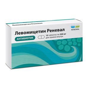 Лекарственное средство Левомицетин-Реневал Таблетки покрытые пленочной оболочкой 500 мг 10 шт