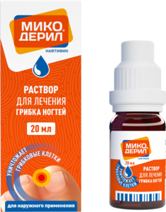 Показания к применению- грибковые инфекции гладкой кожи и кожных складок (tinea corporis, tinea inquinalis);- межпальцевые микозы (tinea manum, tinea pedum);- грибковые инфекции ногтей (онихомикозы);- кандидоз кожи;- отрубевидный лишай;- воспалительные дерматомикозы (с зудом или без него).Применение при беременности и кормлении грудьюПрименение препарата при беременности и в период лактации не рекомендуется(безопасность и эффективность препарата у данной категории пациентов не изучена).ПротивопоказанияПовышенная чувствительность к нафтифину или пропиленгликолю; беременность и период лактации (безопасность и эффективность препарата у данной категории пациентовне изучена).Противопоказано нанесение препарата на раневую поверхность.Побочное действиеВ отдельных случаях могут наблюдаться местные реакции: сухость кожи, гиперемия кожи и жжение. Побочное эффекты носят обратимый характер и не требуют отменылечения. Если любые из указанных в инструкции побочных эффектов усугубляются, или отмечаются любые другие Побочное эффекты, не указанные в инструкции, следуетнемедленно сообщить об этом врачуСоставСостав на 1 мл:Активное вещество: нафтифина гидрохлорид – 10,0 мг.Вспомогательные вещества: пропиленгликоль – 50,0 мг, этанол (этиловый спирт 95 %) – 400,0 мг, вода очищенная – до 1 мл.Взаимодействие с другими препаратамиНе изучалось взаимодействие с другими лекарственными препаратами.