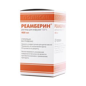Лекарственное средство Реамберин Раствор для инфузий 1,5 % 400 мл