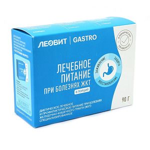 Специализированное питание для желудочно-кишечного тракта (набор специализированных пищевых продуктов диетического лечебного и диетического профилактического питания).Это набор диетических продуктов лечебного и профилактического питания ЛЕОВИТ GASTRO, предназначенных в качестве дополнительного диетического питания к питанию, рекомендованному врачом при соответствующей болезни ЖКТ (гастрит, дуоденит, язвенная болезнь желудка и двенадцатиперстной кишки, гастроэзофагеальнаярефлюксная болезнь, панкреатит, холецистит, функциональные заболевания ЖКТ) для лечения, профилактики обострений и профилактики болезней ЖКТ.