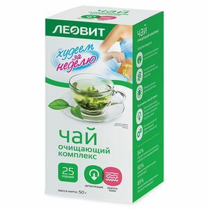 Чай «Очищающий комплекс» – выгодное сочетание травяного аромата и пользы. Улучшает моторно-эвакуаторную функцию кишечника Компоненты способствуют:1. детоксикационному действию на организм (толокнянки лист, столбики с рыльцами кукурузы, экстракт сенны)2. регуляции процессов обмена веществ (инулин, зеленый чай) Компоненты обладают антиоксидантным действием (зеленый чай, витамин С, сенна)ДРУГИЕ ВАРИАНТЫСчитается, что похудение следует начинать с очищения организма. Именно поэтому рекомендуем вам попробовать наш чай. Он приготовлен из отборных сортов зеленого чая. Его травяной аромат хорошо сочетается с функциональными компонентами, которые мы в него добавили. Они участвуют в регуляции обмена веществ и способствуют улучшению работы кишечника (толокнянки лист, столбики с рыльцами кукурузы, сенны экстракт, инулин). Кроме того, мы обогатили наш напиток витаминами С и В6.Наш чай может быть использован в составе низкокалорийных программ питания, а также в качестве самостоятельного диетического профилактического продукта с целью контроля массы тела.Чай в пакетике достаточно заварить кипятком и дать настояться 4-5 минут.