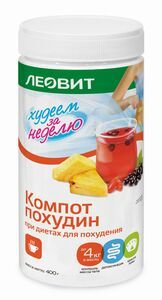 Компот для похудения при диетахКомпот – ароматный и полезный напиток. Приготовлен из фруктов и ягод Способствует снижению риска развития ожирения и метаболического синдрома Удобно взять с собой Готовится за 2 минутыДРУГИЕ ВАРИАНТЫВкус компота знаком каждому из нас еще с детства. Летом его готовят из свежих плодов и ягод, а зимой – из сухофруктов. Получается превосходный напиток, который становится вкусным завершением любого приема пищи. Наш компот такой же вкусный, как и домашний. Но имеет и свои особенности. Мы использовали ананас, черную смородину, яблоко и барбарис, а также добавили биологически активные природные компоненты. Такой напиток вы сможете приготовить дома или на работе всего за 2 минуты! Обязательно используйте для этого кипящую воду – это позволит наилучшим образом «раскрыть» аромат напитка.Пейте наш компот и худейте с удовольствием!Как готовится компот для похудения и диеты Готовим фруктово-ягодную смесь, добавляем крахмал и овсяную муку Высушиваем при щадящих режимах, что позволяет сохранить полезные свойства всех ингредиентов Упаковываем в двухслойную металлизированную упаковку, которая способствует сохранению продукта в течение всего срока годности