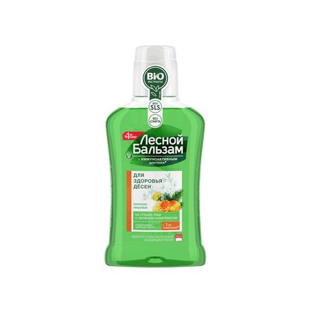 Профилактический ополаскиватель Лесной бальзам с прополисом на отваре трав способствует интенсивному питанию и укреплению десен. Он обладает иммуноактивным действием и в 2 раза улучшает работу собственного иммунитета полости рта, снижая риск развития проблем с деснами*. Клинически-доказанный эффект: — С первого применения исчезает болезненность десен* — До 94% снижает воспаление десен при регулярном использовании** — В 5 раз снижает скорость образования налета на зубах, уменьшая бактериальную нагрузку на мягкие ткани полости рта** — не нарушает баланс микрофлоры полости рта Особенности состава: Насыщенный хвойный вкус. Содержит хвойных комплекс (на основе экстрактов пихты, живицы, можжевельника) с отваром 5 целебных трав, экстрактом шалфея, маслом кедровых орешков и соком алоэ. Такой сбалансированный состав способствует снижению воспаления и отечности десен, блокирует развитие воспалительного процесса и стимулирует восстановление мягких тканей полости рта. Рекомендации: • Ополаскиватель одобрен Стоматологической Ассоциацией России и рекомендован в качестве профилактического средства при воспалении и кровоточивости десен (гингивите, пародонтите). • Использовать после каждой чистки зубов, а также после еды для очищения межзубных промежутков. Наполните колпачок ополаскивателем и тщательно прополощите полость рта в течение 30 секунд. • Не требуется полоскать после использования водой. • При кровоточивости десен рекомендуется использовать совместно с зубной пастой Лесной бальзам после каждой чистки зубов, а также тщательно полоскать полость рта после каждого приема пищи. В период ремиссии сохранить использование минимум 1 раз в день для предупреждения развития проблем десен и улучшения питания мягких тканей полости рта. • Подходит для использования в ирригаторе. • Подходит для использования в период беременности и лактации *Лесной бальзам поддерживает иммунитет и усиливает эффективность работы естественных защитных функций полости рта. Свойства подтверждены клиническими испытаниями РФ, 2016-2017. **При совместном использовании зубной пасты и ополаскивателя Лесной бальзам на основе хвойного комплекса с отваром трав согласно клиническим испытаниям, через 1 месяц использования, Россия 2017 Не является лекарственным средством. Применение не освобождает от посещения стоматолога.