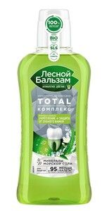 Бренд Лесной бальзам — это проверенные продукты, способствующие снижению воспаления, кровоточивости десен и обеспечивающие качественную профилактику основных проблем полости рта в домашних условиях.Лесной Бальзам ополаскиватель для полости рта TOTAL Комплекс с морской солью, алоэ и белым чаемПопробуй новый ополаскиватель Лесной бальзам TOTAL Комплекс с морской солью, соком алоэ и экстрактом белого чая.Формула ополаскивателя на 98% состоит из ингредиентов натурального происхождения, интенсивно очищает зубы от налета, защищает от зубного камня и препятствует развитию кровоточивости десен, обеспечивая комплексную защиту всей полости рта.Формула ополаскивателя TOTAL Комплекс борется с первопричиной развития серьезных проблем полости рта — зубным налетом, который вызывает кариес, влияет на изменение цвета зубов, приводит к образованию зубного камня и кровоточивости десен.Формула ополаскивателя усилена минеральными компонентами и экстрактами трав, не содержит парабенов и спирта, имеет самый мягкий вкус в линейкеЛесной бальзам и рекомендована стоматологами для ежедневного использования: морская соль защищает от бактерий и помогает предотвратить разрушающее действие налета на эмаль зубов, сок алоэ и экстракт белого чая укрепляют десны, защищают от кровоточивости.Специальные особенности: содержит фтористый натрий.Результат: Защита для десен.