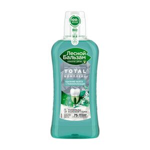 Формула ополаскивателя Лесной бальзам TOTAL Комплекс с морской солью, маслом мяты и экстрактами лесных трав эффективно борется с первопричиной развития серьезных проблем полости рта – зубным налетом, эффективно удаляет налет в труднодоступных для щетки местах, снижает скорость появления налета на зубах в течение дня, защищает от зубного камня, укрепляет зубы и десны. На 98% состоит из компонентов природного происхождения, не содержит парабенов и спирта. Эффективно борется с налетом и укрепляет эмаль, снижая риск развития серьезных проблем полости рта. Минералы морской соли помогают предотвратить разрушающее действие налета на эмаль зубов и защищают от кариеса. Растительные экстракты укрепляют десны, обладают противовоспалительными свойствами. Клинически доказано: на 75% меньше налета в межзубных промежутках1. 98% ингредиентов природного происхождения, не содержит парабены и спирт. Флакон на 100% сделан из переработанного пластика. Упаковка пригодна для переработки.1 при совместном применении зубной пасты и ополаскивателя Лесной бальзам в сравнении с начальным состоянием полости рта, УГМУ Минздрава РФ, 2018.Не является лекарственным средством. Применение не освобождает от посещения стоматолога.