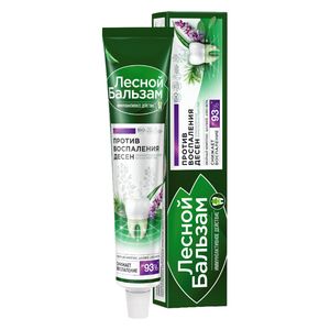 Профилактическая зубная паста Лесной бальзам на отваре трав c иммуноактивным действием помогает решить проблему воспаления десен и в 2 раза улучшает работу собственного иммунитета полости рта, снижая риск развития проблем с деснами*. Содержит хвойный комплекс (на основе экстрактов пихты, живицы, можжевельника) с отваром 5 целебных трав, экстрактом шалфея и соком алоэ.*Лесной бальзам поддерживает иммунитет и усиливает эффективность работы естественных защитных функций полости рта. Свойства подтверждены клиническими испытаниями РФ, 2016 — 2017.Богатый натуральный состав способствует снижению воспаления и отечности десен, блокирует развитие воспалительного процесса и стимулирует восстановление мягких тканей полости рта.Преимущества: Обладает выраженным кровоостанавливающим и иммуноактивным действием, поддерживает естественные защитные функций полости рта Содержит хвойных комплекс (на основе экстрактов пихты, живицы, можжевельника) с отваром трав, экстрактом шалфея и соком алоэ Имеет насыщенный хвойный вкус Снижает воспаление десен до 94% Поддерживает баланс микрофлоры полости рта Рекомендована стоматологами при воспалении, кровоточивости или общем ослаблении десен