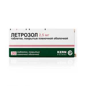 Состав Летрозол 2.5 мг Вспомогательные вещества: лактозы моногидрат 50 мг, карбоксиметилкрахмал натрия 2.5 мг, кремния диоксид коллоидный 500 мкг, целлюлоза микрокристаллическая 28 мг, кросповидон 4 мг, крахмал кукурузный прежелатинизированный 11.5 мг, магния стеарат 1 мг. Состав пленочной оболочки: опадрай Y 1-7000 (гипромеллоза, титана диоксид, макрогол (полиэтиленгликоль)) 3.73 мг, краситель железа оксид желтый 270 мкг. Фармакологическое действие Противоопухолевый препарат, ингибитор синтеза эстрогенов. Летрозол оказывает антиэстрогенное действие, селективно ингибирует ароматазу (фермент синтеза эстрогенов) путем высокоспецифичного конкурентного связывания с субъединицей этого фермента — гемом цитохрома Р450. Блокирует синтез эстрогенов как в периферической, так и в опухолевой тканях. У женщин в постменопаузном периоде эстрогены образуются преимущественно при участии фермента ароматазы, который превращает синтезирующиеся в надпочечниках андрогены (в первую очередь, андростендион и тестостерон) в эстрон и эстрадиол. Ежедневный прием Летрозола в суточной дозе 0.1-5 мг приводит к снижению концентрации эстрадиола, эстрона и эстрона сульфата в плазме крови на 75-95% от исходного содержания. Супрессия синтеза эстрогенов поддерживается на протяжении всего периода лечения. При применении Летрозола в диапазоне доз от 0.1 до 5 мг нарушения синтеза стероидных гормонов в надпочечниках не наблюдается, тест с АКТГ не выявляет нарушений синтеза альдостерона или кортизола. Дополнительного назначения глюкокортикоидов и минералокортикоидов не требуется. Блокада биосинтеза эстрогенов не приводит к накоплению андрогенов, являющихся предшественниками эстрогенов. На фоне приема Летрозола не отмечено изменений концентраций ЛГ и ФСГ в плазме крови, изменений функции щитовидной железы, изменений липидного профиля, повышения частоты развития инфаркта миокарда и инсульта. На фоне лечения Летрозолом в небольшой степени повышается частота остеопороза (6.9% по сравнению с 5.5% на фоне плацебо). Однако частота переломов костей у пациенток, получающих Летрозол, не отличается от таковой у здоровых людей того же возраста. Адъювантная терапия Летрозолом ранних стадий рака молочной железы снижает риск рецидивов, увеличивает выживаемость без признаков заболевания в течение 5 лет, снижает риск развития вторичных опухолей. Продленная адъювантная терапия Летрозолом снижает риск рецидивов на 42%. Достоверное преимущество по выживаемости без признаков заболевания в группе летрозола отмечалось вне зависимости от вовлеченности лимфатических узлов. Лечение Летрозолом снижает смертность пациенток с вовлечением лимфатических узлов на 40%. Способ применения и дозы Препарат принимают внутрь, независимо от приема пищи. Рекомендуемая доза препарата Летрозол составляет 2.5 мг 1 раз/сут, ежедневно, длительно (в течение 5 лет или до рецидива). В качестве продленной адъювантной терапии лечение должно продолжаться в течение 4 лет (не дольше 5 лет). При появлении признаков прогрессирования заболевания прием препарата Летрозол следует прекратить. У пациенток с заболеванием на последней стадии или метастазирующей опухоли, лечение Летрозолом следует продолжать до тех пор, пока выражено прогрессирование опухоли. У пациенток пожилого возраста коррекции дозы препарата Летрозо