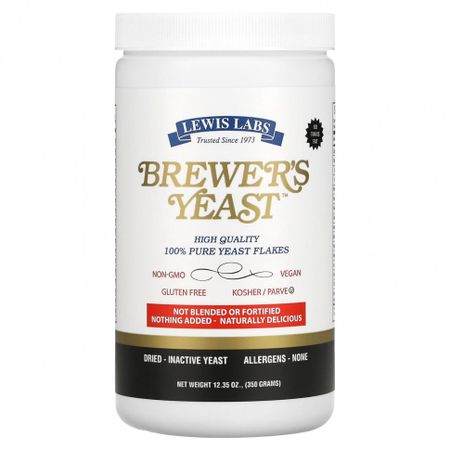 Описание Trusted Since 1973 No Trans Fat High Quality 100% Pure Yeast Flakes Non-GMO VeganGluten Free Kosher/Parve Not Blended Or Fortified Nothing Added-Naturally Delicious Dried — Inactive Yeast Allergens — None Certified GMP Third Party Lab Tested This premium yeast is a primary strain of saccharomyces cerevesiae. It is a vegan food made from dried, inactive yeast grown in Northern Europe on sugar beet molasses without any additives or preservatives. Sugar beets are known to absorb more nutrients from the soil than almost any other crop. It provides one of the richest natural sources of vitamins and trace elements. Рекомендации по применению Take 3 level tablespoons daily. Ideal for sprinkling on salads, popcorn, soups, cereals, etc. It is such a pleasant tasting yeast, it can simply be consumed as is. To preserve valuable vitamins it is advisable not to heat to 220°F. Ингредиенты Brewer’s yeast (inactive yeast).Produced in a facility that also produces products containing peanuts. Предупреждения Contents are sold by weight and may settle during shipment. The nutritional content and vitamin values are subject to natural fluctuation. Информация о добавкахServing Size: Approx. 3 levels tbsps. (25 g)Servings Per Container: 14 Amount Per Serving%Daily ValueCalories 100 Total Carbohydrate 10 g 4%†Dietary Fiber 5 g 18%†Sugar 0 g 0%†Protein12 g 24%†Potassium550 mg 10%Folate 500 mcg 120%Calcium20 mg 2%Niacin9.3 mg 60%Biotin4.6 mcg 15%Pantothenic Acid 2.5 mg 50%Riboflavin1.5 mg 120%Iron1 mg 6%Vitamin B6 0.83 mg 50%Thiamin0.5 mg 40%Brewers Yeast (inactive yeast)25 g *†Percent Daily Values are based on a 2,000 calorie diet.