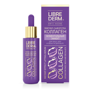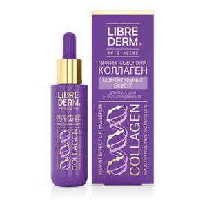 Мгновенно подтягивает кожу и выравнивает цвет. А при регулярном использовании возвращает четкий контур овалу лица, разглаживает морщины.Сыворотка Коллаген мгновенно подтягивает кожу и выравнивает цвет, а при регулярном использовании возвращает четкий контур овалу лица, разглаживает морщины. День ото дня ваша кожа наполняется энергией и жизненной силой: становится более плотной, эластичной, упругой, ровной, без морщинок, свежей и сияющей! Сыворотка содержит активный комплекс, оказывающий мгновенный и длительный лифтинг-эффект и препятствующий формированию морщин. Заметно разглаживает и сокращает глубокие морщины ( на лбу, межброные морщины, «гусиные лапки», носогубные складки, морщины на щеках и уголках рта). Глубоко и надолго увлажняет кожу. Лифтинг-сыворотка Коллаген «Моментальный эффект»:-мгновенно подтягивает кожу и выравнивает цвет-при регулярном использовании возвращает четкий контур овалу лица, разглаживает морщины-обеспечивает мгновенный эффект лифтинга-высококонцентрированная формула с коллагеном и эластиномПреимущества:-флакон с удобной пипеткой для нанесения сыворотки-содержит коллаген-эластиновый комплекс-не содержит отдушку-не содержит парабенов Производитель: ООО "Дина+"Страна: РоссияОбъём: 40 мл