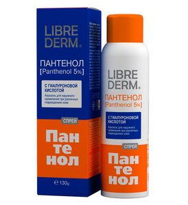 Спрей Librederm «Пантенол с гиалуроновой кислотой» — вспомогательное средство при различных проблемах и повреждениях кожи (солнечных и термических ожогах, трещинах, сухости). Благодаря гиалуроновой кислоте и D-пантенолу обладает пролонгированным увлажняющим и восстанавливающим действием. D-пантенол (провитамин В5) ускоряет процессы регенерации кожи, устраняя покраснения, сухость и дискомфорт. Восстанавливает упругость и эластичность кожи. Гиалуроновая кислота способствует восстановлению и поддержанию оптимального водного баланса, придавая коже мягкость и комфорт. Стимулирует образование коллагена и эластина, препятствуя преждевременному старению кожи.