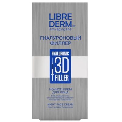 Ночной крем для лица 3D filler – безынъекционное омолаживающее средство, разработано для достижения максимальной эффективности в борьбе с видимыми признаками старения, обеспечивает глубокое увлажнение и питание кожи в ночное время суток, борется со следами усталости. Активные ингредиенты в составе средства деликатно расслабляют мышцы лица, разглаживая рельеф, ускоряют клеточную регенерацию, стимулируя выработку собственного коллагена и эластина, уменьшают выраженность морщин и предотвращают появление новых.