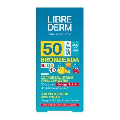 Солнцезащитный Bronzeada Омега 3-6-9 SPF 50+ для детей с 1-го года жизни обеспечивает высокую иммунную, антиоксидантную и фотостабильную защиту кожи от негативного воздействия UVA/UVB и инфракрасных лучей (IR). Ухаживающий комплекс с Омега 3-6-9 и термальной водой поддерживает гидролипидный барьер кожи. Тающая нежирная текстура крема легко распределяется, не оставляет белых следов и ощущения липкости.