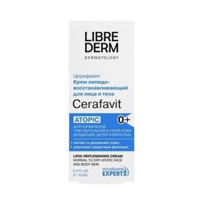 Липидовосстанавливающий крем CERAFAVIT разработан для ежедневного ухода за сухой, чувствительной и атопической кожей 0+. Специальная формула средства с ключевыми липидами здоровой кожи (витамином F, церамидами, холестеролом) и пребиотиком мгновенно устраняет сухость и ощущение стянутости, помогает уменьшить зуд и раздражения, поддерживая защитный барьер и микробиом кожи. Без красителей и парабенов. Гипоаллергенная отдушка. КЛИНИЧЕСКИ ДОКАЗАННАЯ ЭФФЕКТИВНОСТЬ И БЕЗОПАСНОСТЬ: Применение средств Cerafavit с церамидами и пребиотиком в три раза уменьшает проявления сухости, покраснения и зуда; * Более чем в два раза снижает потребность в топических гормональных средствах; * Безопасно с первых дней жизни. ** *Открытое сравнительное исследование «Изучение клинической эффективности, безопасности и переносимости косметического средства LIBREDERM «CERAFAVIT с церамидами и пребиотиком» N = 30, от 1 года до 18 лет. Период – 3 месяца. На базе Федерального государственного автономного учреждения «Национальный медицинский исследовательский центр здоровья детей» Минздрава России. Главный исследователь: Мурашкин Н.Н., д.м.н., проф