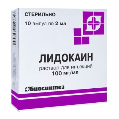 Показания Системная абсорбция лидокаина определяется местом введения, дозой и его фармакологическим профилем. Cmax достигается после межреберной блокады, далее (в порядке снижения концентрации), после введения в поясничное эпидуральное пространство, плечевое сплетение и подкожные ткани. Основным фактором, определяющим скорость абсорбции и концентрацию в крови, является общая введенная доза, независимо от участка введения. Имеется линейная зависимость между количеством введенного лидокаина и результирующей Cmax в плазме крови. Выделяется с грудным молоком (до 40% от концентрации в плазме матери). Метаболизируется в печени, около 90% введенной дозы подвергается N-дезалкилированию с образованием моноэтилглицинксилидида и глицинксилида. Глицинксилид обладает более длинным, чем лидокаин, T1/2 (около 10 ч) и может кумулировать при многократном введении. Метаболиты, образующиеся в результате последующего метаболизма, выводятся с мочой, содержание неизменного лидокаина в моче не превышает 10%. T1/2 при непрерывной инфузии в течение 24-48 ч составляет около 3 ч. Подкисление мочи способствует увеличению выведения лидокаина. Фармакологическое действие Местный анестетик амидного типа, короткого действия. В основе его механизма действия лежит уменьшение проницаемости мембраны нейрона для ионов натрия. В результате этого снижается скорость деполяризации и повышается порог возбуждения, приводя к обратимому местному онемению. Лидокаин применяется в целях достижения проводниковой анестезии в различных участках тела и контроля аритмии. Обладает быстрым началом действия (около 1 мин после в/в введения и 15 мин после в/м введения), быстро распространяется в окружающие ткани. Действие продолжается 10-20 мин после в/м введения и около 60-90 мин после в/в введения. Лекарственное взаимодействие Токсичность лидокаина увеличивается при его одновременном применении с циметидином вследствие повышения концентрации лидокаина. Оба препарата снижают печеночный кровоток. Кроме того, циметидин ингибирует микросомальную активность. Ранитидин незначительно снижает клиренс лидокаина, что приводит к повышению его концентрации. Повышение сывороточной концентрации лидокаина также могут вызывать противовирусные средства (например, ампренавир, атазанавир, дарунавир, лопинавир). Гипокалиемия, вызываемая диуретиками, может снижать действие лидокаина при их одновременном применении. Лидокаин следует применять с осторожностью у пациентов, получающих другие местные анестетики или средства, структурно сходные с местными анестетиками амидного типа (например, антиаритмическими средствами, такими как мексилетин, токаинид), поскольку системные токсические эффекты носят аддитивный характер. Отдельные исследования лекарственного взаимодействия между лидокаином и антиаритмическими средствами III класса (например, амиодароном) не проводились, однако рекомендуется соблюдать осторожность. У пациентов, одновременно получающих антипсихотические средства, удлиняющие или способные удлинять интервал QT(например пимозид, сертиндол, оланзапин, кветиапин, зотепин), прениламин, эпинефрин (при случайном в/в введении) или антагонисты 5-НТ3-серотониновых рецепторов (например, трописетрон, доласетрон), может повышаться риск развития желудочковых аритмий. Одновременное приме