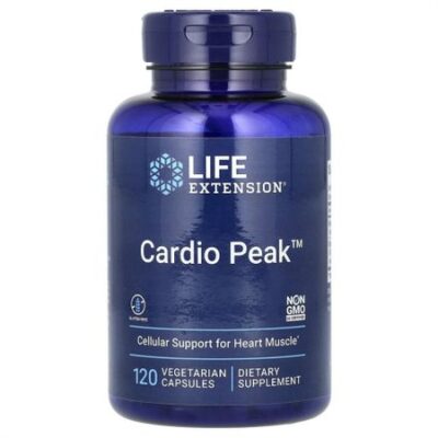 боярышника (листья, цветки, стебель)]30 мг**** Суточная норма не определена Не содержит глютенаПоддержка сердца на клеточном уровнеПищевая добавкаОтсутствие ГМО в составе подтверждено сертификатом Non GMO LE CertifiedКардиотоники традиционно используются для поддержки сердечной функции и жизнеспособности. Созданный на основе двух клинически изученных кардиотонических средств, Cardio Peak™ от Life Extension поддерживает нормальную функцию сердечной мышцы и здоровье коронарных артерий, а также помогает улучшить выносливость при физической нагрузке. Боярышник содержит комплексы, которые способствуют нормальному кровообращению и эффективному функционированию сердечной мышцы.Способствует здоровой функции сердца и сокращению сердечной мышцы Обеспечивает защиту от разрушительного действия окислительных молекул Помогает защитить критический эндотелиальный слой коронарных артерий Поддерживает общую кардиозащитную программуПоддержка здоровья сердцаКомплексная программа, включающая диету, физические упражнения и здоровый образ жизни, важна для здоровья сердечно-сосудистой системы. Это то, что привело нас к разработке Cardio Peak™ для поддержки сильного и здорового сердца, защиты клеток сердечной мышцы от окисления и улучшения работы сердечно-сосудистой системы.Экстракт боярышника для здоровья сердца Кардиотонический эффект экстракта боярышника, веками использовавшегося для поддержания здоровья сердца, был хорошо изучен в ходе клинических испытаний. Боярышник содержит комплексы особых биофлавоноидов, которые способствуют нормальному кровообращению и эффективному функционированию сердечной мышцы.Исследования показывают, что компоненты боярышника эффективно поддерживают работу сердечно-сосудистой системы и способствуют сильной сокращающей силе сердечной мышцы человека, защите клеток сердечной мышцы от окислительного повреждения и нормальной экспрессии генов для здоровья сердечно-сосудистой системы. Исследования также подтвердили роль экстракта арджуны в дополнении к эффективной работе боярышника в поддержке улучшенной функции сердца. Исследования показали, что арджуна способствует усилению тонуса сердечной мышцы, улучшая ее ‘сжатие’ и увеличивая количество крови, которое она может перекачивать каждую секунду без переутомления. Он также поддерживает здоровую функцию эндотелия и помогает улучшить выносливость при физических упражнениях.