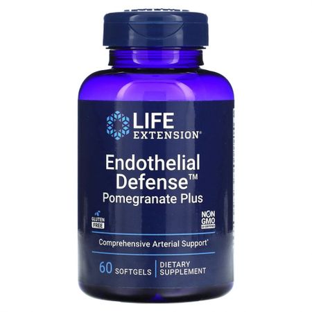 Life Extension, эндотелиальная защита, экстракт граната Pomegranate Plus, 60 капсул