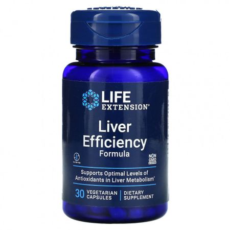 Пищевая ценностьРазмер порции: 1 вегетарианская капсула Количество в 1 порции% от суточной нормыЭкстракт лимонника (плоды) [стандартизованный до 9% общего количества шизандринов250 мг**Концентрат мякоти дыни Extramel® (плоды) [содержащий 140 МЕ СОД]10 мг**** Суточная норма не определена Поддерживает оптимальный уровень антиоксидантов при метаболизме печени Пищевая добавка Не содержит ГМО Печень — это большой железистый орган, функции которого включают разложение эритроцитов, синтез белков плазмы, выработку гормонов, секрецию желчи и превращение сахаров в гликоген, который он накапливает. Печень также отвечает за переработку многих витаминов и питательных веществ в форму, которая может быть использована организмом, а также за выведение из организма различных токсических веществ. Современный образ жизни предполагает ежедневное воздействие токсичных для нашего организма веществ, что накладывает большую нагрузку на печень. Поэтому здоровая печень имеет решающее значение для хорошего самочувствия. Определенные риски, связанные с образом жизни и наличием заболеваний, делают все более важным поддержание печени в функциональном состоянииПечень подвержена постоянному воздействию свободных радикалов и особенно чувствительна к митохондриальному распаду. Снижение выхода клеточной энергии в печени отрицательно сказывается на растущем проценте населения. Согласно самым последним оценкам, сегодня треть американцев нуждается в целенаправленной поддержке здоровой функции печени.Liver Efficiency Formula содержит два современных молекулярных активатора, которые способствуют здоровой функции печени на клеточном уровне. Первый — лимонник китайский, адаптогенная виноградная лоза, растущая в Азии, общесистемные преимущества которой подтверждены полувековым исследованием и почти 400 опубликованными исследованиями. Исследователи обнаружили, что лигнаны в плодах лимонника китайского поддерживают здоровые уровни глутатиона — собственной системы антиоксидантной защиты клеток. Как показали доклинические исследования, биоактивные соединения лимонника китайского легко абсорбируются во всех сегментах кишечника. Исследования на животных доказывают, что лимонник китайский значительно улучшает статус глутатиона в истощенных клетках печени.Liver Efficiency Formula также содержит Extramel, фруктовый концентрат, полученный из дыни (Cucumis melo) без ГМО, естественный источник антиоксидантной супероксиддисмутазы или СОД — одного из самых сильных нейтрализаторов свободных радикалов в организме человека. Эффективность и безопасность Extramel подтверждены опубликованными клиническими исследованиями. В плацебо-контролируемом исследовании группа из 70 добровольцев в возрасте 30?55 лет, принимавших 10 мг препарата Extrame в день, всего через четыре недели ощутила значительно более высокий уровень энергии, улучшение физической работоспособности и настроения.