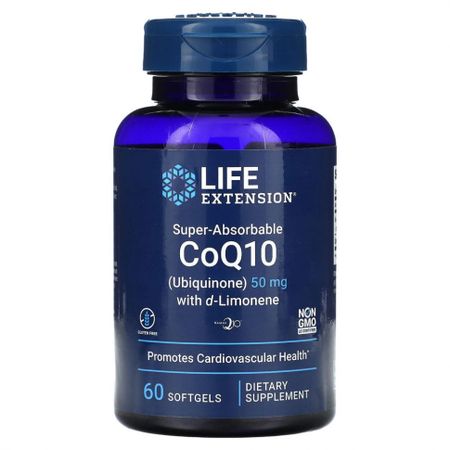 Life Extension, Супер-усваиваемый коэнзим Q10 с d-лимоненом, 50 мг, 60 мягких таблеток