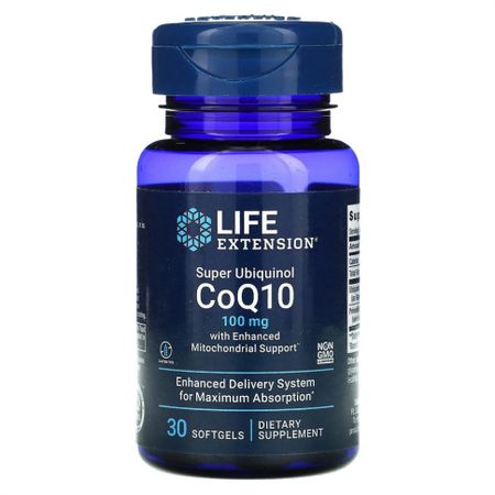 † При условии потребления 2000 калорий в день. Не содержит глютенаСертификат Non GMO LE CertifiedПищевая добавкаУлучшенная система доставки для максимального усвоенияKaneka содержит высококачественный убихинолКоэнзим Q10 поддерживает здоровье сердца и выработку энергии на клеточном уровне. Суперубихинол CoQ10 состоит из убихинола, кофермента Q10 с высокой биодоступностью. Клетки сердца, как и другие органы, нуждаются в CoQ10. Вот почему коэнзим Q10 также накапливается в мозге, печени и почках.Преимущества CoQ10 Обеспечивает мощную поддержку сердечно-сосудистой системы и антиоксидантную защиту Способствует выработке здоровой энергии на клеточном уровне Жизненно важен для таких органов, как сердце, мозг и почки Поглощается до 8 раз лучше, чем убихинон CoQ10Коэнзим Q10 для здоровья сердца и производства клеточной энергииCoQ10 (или коэнзим Q10) является важным питательным веществом для поддержания здоровой функции митохондрий, процесса, в результате которого производится энергия на клеточном уровне. Поэтому неудивительно, что CoQ10 сконцентрирован в мозге, печени, почках и сердце — органах, потребляющих много энергии.Также CoQ10 обладает мощными антиоксидантными свойствами, защищая важные белки и митохондриальную ДНК от окислительного повреждения. К сожалению, со временем уровень CoQ10 в организме снижается.Улучшенная биодоступность: убихинолТрадиционная форма CoQ10, убихинон, плохо усваивается организмом. Именно поэтому Life Extension предлагает форму CoQ10, обладающую высокой биодоступностью в виде запатентованного продукта, который гарантированно усваивается организмом в 8 раз лучше убихинона. У людей, принимающих эту форму убихинола, высокий уровень содержания плазмы CoQ10 достигается всего за четыре недели.CoQ10 и возрастные измененияВ одном из предварительных исследований убихинол на 40% эффективнее замедлял признаки старения, чем убихинон. В доклиническом исследовании усталости, вызванной физической нагрузкой, убихинол CoQ10 был на 90% более эффективным, чем убихинон, в поддержании физической работоспособности.Поддержите здоровье сердцаСуперубихинол CoQ10 — это эффективная формула для здоровья сердца и поддержки молодости клеток. Добавьте его в свой рацион уже сегодня!