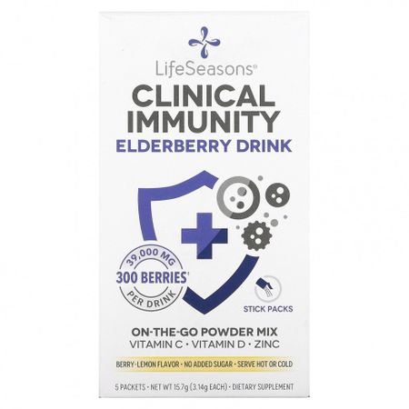 LifeSeasons, Смесь для приготовления напитков из бузины, ягоды и лимон, 39000 мг, 5 пакетиков по 3,14 г