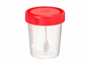 Контейнер для биоматериала с ложкой стерильный, объемом 60 мл идеально подходит для сбора и хранения биологических образцов, таких как кровь, моча, слюна и т.д. Контейнер поставляется в индивидуальной упаковке, что обеспечивает максимальный уровень гигиены и защиты образца. Наличие ложки упрощает процедуру взятия образца и гарантирует точность результатов. Контейнер легко использовать и переносить благодаря компактным размерам.Стерильный контейнер объемом 60 мл с ложкой-шпателем, полем для надписей и градуировкой для взятия образцов биоматериала и транспортировки до места проведения анализов.Контейнер для сбора кала — снабжен герметично завинчивающейся крышкой красного цвета, обеспечивающей надежную защиту от расплескивания, протекания и ингаляционного контакта.В крышку контейнера для сбора кала вделана лопатка (ложка)-отборник для удобства взятия материала.Контейнер для сбора кала изготовлен из прозрачного медицинского полистирола, является химически нейтральными и бактериально чистым и механически устойчивым веществом.Использование такой специализированной тары для анализов при сдаче мочи и кала сводит к минимуму шансы попадания в пробу посторонних веществ, а также значительно увеличивает срок, приемлемый для качественного проведения анализа.