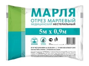 Марля медицинская хлопчатобумажная отбеленная плотностью — это универсальный медицинский материал, применяемый в медицине и косметологии. Он изготавливается из натурального хлопка и обладает определенными свойствами: гигроскопичностью, воздухопроницаемостью, прочностью и мягкостью. Также марля хорошо переносит обработку дезинфицирующими растворами, не вызывает раздражения кожи и не оставляет ворсинок. Этот продукт произведен в соответствии со всеми стандартами и требованиями, установленными для медицинских изделий, и может быть использован как в клиниках, так и домашних условиях для обработки ран, перевязки и прочих медицинских процедур.Белизна марли: не менее 80%Стерильность: нестерильныеУпаковка: индивидуальнаяСферы применения:В медицине в качестве перевязочного материала, удерживания ватных тампонов, фиксации повязок, для наложения повязки после хирургического вмешательства с целью осушения раны и предотвращения заражения, для изготовления сорбционных перевязочных средств (салфеток, шариков, турунд и т.д.), а также ватно-марлевых повязок,В быту в процессе приготовления пищи, при уходе за маленькими детьми, для протирки поверхностей от загрязнений, в садово-огородных работах,В промышленности и строительстве в качестве отличной фильтрующей, обтирочной ткани,в покрасочной деятельности, так как отлично справляется с грязью, пылью, прекрасно очищает поверхность для обезжиривания перед окрашиванием,Является незаменимым составляющим элементом домашних аптечек, позволяет быстро и эффективно обрабатывать бытовые раны, защищая их от загрязнений,