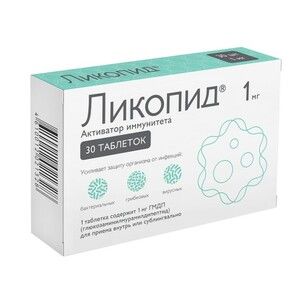 Главная » Аптека Ликопид Таблетки 1 мг 30 шт Просмотров 12 Круглые плоскоцилиндрические таблетки белого цвета с фаской. СКОПИНФАРМ