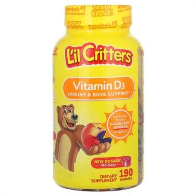 L’il Critters, витамин D3 для поддержки костей, со вкусом натуральных фруктов, 190 жевательных мармеладок