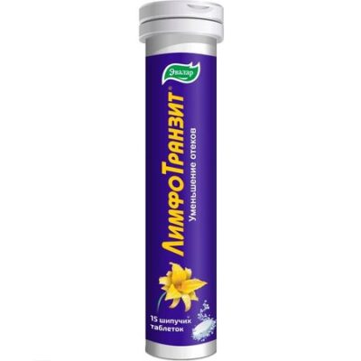 ЛИМФОТРАНЗИТ — Биологически активная добавка (БАД) к пище — Снятие отеков, активизации работы лимфатической системы, очищение организма от токсинов Активное вещество: сок бузины, экстракт крапивы, плодоножек вишни, клюквы, кукурузных рылец, кошачьего когтя, витамин С Действие: для очищения организма, противоотечное, лимфодренажное Содержание в 2 таблетках (суточном приеме): Крапивы экстракт (корня) 160 мг* Вишни плодоножек экстракт 100 мг* Кукурузных рылец экстракт 50 мг* Кошачьего когтя экстракт сухой 4 мг* Бузины сок порошкообразный 300 мг* Клюквы экстракт 100 мг* Аскорбиновая кислота 200 мг 333% от рекомендуемого уровня суточного потребления * Суточная норма не определена. Количество белков, жиров, углеводов и энергетическая ценность в расчете на суточный прием составляет менее 2 процентов величин, отражающих суточную потребность взрослого человека в белках, жирах, углеводах и энергии. ЛимфоТранзит в форме шипучих таблеток — вкусный напиток из экстрактов растений, разработанный специально для очищения лимфы, который способствует: • Уменьшению отеков • Активации работы лимфатической системы, улучшению движения лимфы • Очищению организма от токсинов • Мочегонному действию • Противовоспалительному действию Напиток отличается: -удобной формой приема (шипучие таблетки) -отсутствием консервантов -меньшим количеством воды для получения суточной нормы (всего 2 стакана (0,4 л) в день, в то время как концентрат напитка необходимо разводить в 1 литре воды). -дополнительным действием по защите капилляров. Очищение лимфы — это немаловажная процедура, необходимая для устранения отеков, ведь лимфатическая система поддерживает чистоту внутренней среды организма. Ее роль — дренажно-детоксикационная. Именно она осуществляет транзит тканевой жидкости и выведение шлаков и токсинов из каждой клетки организма. КАК РАБОТАЮТ ИНГРЕДИЕНТЫ: Бузины сок порошкообразный — входящий в его состав биофлавоноид рутин нормализует проницаемость капилляров и повышает их прочность, стимулирует тканевое дыхание. Аскорбиновая кислота (витамин С) — сильнейший антиоксидант. Его назначение — защита внутренних органов и тканей от повреждений различной этиологии. Крапивы экстракт очищает кровь, улучшает обмен веществ и снабжение тканей кислородом, способствует снижению уровня сахара в крови. Плодоножек вишни экстракт обладает мочегонным и противовоспалительным действиями. Клюквы экстракт отличается большой набором минеральных веществ, что во многом определяет целебные свойства клюквы. Соли калия обладают мягким мочегонным действием и помогают при различных нарушениях обмена веществ. Кукурузных рылец экстракт — мочегонное и желчегонное средство. Кошачьего когтя экстракт оказывает очищающее и противовоспалительное действие. улучшает показатели крови и обмен веществ.