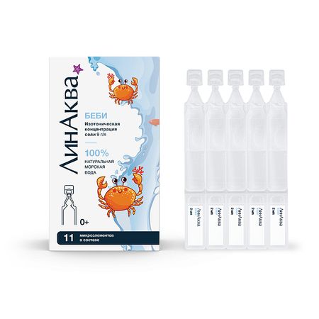 ЛИНАКВА БЭБИ 2МЛ N30 СРЕДСТВО Д/ПРОМЫВ НОСА — юнидозы (тюбик-капельницы)Область применения медицинского изделияОбласть применения – оториноларингология. Средство предназначено для профилактики и использования в комплексном лечении ЛОР -заболеваний для детей с 0 лет, посредством промывания слизистой полости носа и носоглотки.Оказывает противовоспалительное и увлажняющее действие, снимает раздражение.Тщательно промывает все отделы полости носа и носоглотки, активно очищая их от бактерий, вирусов, аллергенов, корок, слизи, частиц пыли.Поддерживает нормальное физиологическое состояние слизистой оболочки полости носа, повышает местный иммунитет.Уменьшает отек слизистой оболочки полости носа и носоглотки, способствует восстановлению носового дыхания. Повышает терапевтическую эффективность лекарственных средств, наносимых на слизистую оболочку полости носа и сокращает продолжительность респираторных заболеваний. Снижает риск распространения инфекции в околоносовые пазухи и полость уха.Ускоряет процессы регенерации слизистой оболочки полости носа и носоглотки, снижает риск развития осложнений после операций в полости носа и околоносовых пазухах.Средство для промывания и орошения полости носа «ЛинАква беби» (далее – Средство), прозрачная бесцветная жидкость без запаха со слабосоленым вкусом.