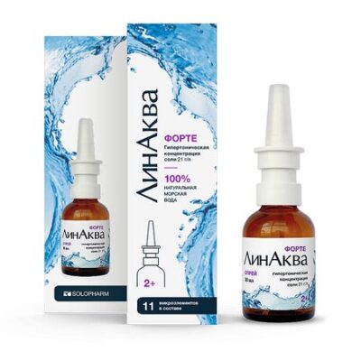 Средство для промывания и орошения полости носа для детей и взрослых «ЛинАква форте» (далее — Средство), прозрачная бесцветная жидкость без запаха.Область применения медицинского изделияОбласть применения — оториноларингология. Средство предназначено для ежедневного использования в качестве профилактики и комплексного лечения острых и хронических воспалительных ЛОР-заболеваний для детей с 2-х лет и взрослых, посредством промывания и орошения слизистой полости носа и носоглотки.Устраняет заложенность носа меньше чем за 3 минуты. Уменьшает отек слизистой оболочки полости носа и носоглотки, способствует восстановлению носового дыхания.Современная технология BOV (bag-on-valve) позволяет создать уникальную упаковку, которая работает в любом положении и абсолютно стерильна в течение всего срока использования продукта.Оказывает противовоспалительное и увлажняющее действие, снимает раздражение.Тщательно промывает все отделы полости носа и носоглотки, активно очищая их от бактерий, вирусов, аллергенов, корок, слизи, частиц пыли.Поддерживает нормальное физиологическое состояние слизистой оболочки полости носа, повышает местный иммунитет.Уменьшает отек слизистой оболочки полости носа и носоглотки, способствует восстановлению носового дыхания. Способствует повышению терапевтической эффективности лекарственных средств, наносимых на слизистую оболочку полости носа и сокращает продолжительность респираторных заболеваний.Снижает риск распространения инфекции в околоносовые пазухи и полость уха.Ускоряет процессы регенерации слизистой оболочки полости носа и носоглотки, снижает риск развития осложнений после операций в полости носа и околоносовых пазухах.Особенности:-Профилактика и комплексное лечение воспалительных заболеваний полости носа-Подходит для особо чувствительной и раздраженной слизистой носа