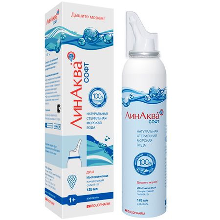 ЛИНАКВА СОФТ 125МЛ СРЕДСТВО Д/ПРОМЫВ НОСАОбласть применения медицинского изделияОбласть применения – оториноларингология. Средство предназначено для профилактики и использования в комплексном лечении ЛОР — заболеваний для детей с 1 года и взрослых, посредством промывания и орошения слизистой полости носа и носоглотки.Оказывает противовоспалительное и увлажняющее действие, снимает раздражение.Тщательно промывает все отделы полости носа и носоглотки, активно очищая их от бактерий, вирусов, аллергенов, корок, слизи, частиц пыли.Поддерживает нормальное физиологическое состояние слизистой оболочки полости носа, повышает местный иммунитет.Уменьшает отек слизистой оболочки полости носа и носоглотки, способствует восстановлению носового дыхания. Повышает терапевтическую эффективность лекарственных средств, наносимых на слизистую оболочку полости носа и сокращает продолжительность респираторных заболеваний. Снижает риск распространения инфекции в околоносовые пазухи и полость уха.Ускоряет процессы регенерации слизистой оболочки полости носа и носоглотки, снижает риск развития осложнений после операций в полости носа и околоносовых пазухах.Средство для промывания и орошения полости носа для детей и взрослых «ЛинАква софт» (далее – Средство), прозрачная бесцветная жидкость без запаха со слабосоленым вкусом.