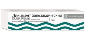 Главная » Аптека Линимент бальзамический (по Вишневскому) Линимент 30 г Просмотров 5 Линимент от светло-желтого до коричневого цвета, с характерным запахом. Алтайвитамины