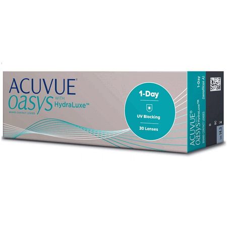 Контактные линзы ACUVUE OASYS 1-Day with HydraLuxe™ Technology — это инновационная разработка всемирно известного производителя оптической продукции Acuvue, созданная специально для обладателей чувствительных глаз. По мнению врачей-офтальмологов, это оптимальный вариант для тех людей, которым приходится много времени проводить за компьютером или другими гаджетами, а также предрасположенных к сухому кератиту. Использование данных оптических изделий способствует предотвращению усталости глаз и обеспечивает пользователю непревзойденный комфорт. Они рассчитаны на ежедневную замену, которая, как известно, считается сегодня самым безопасным режимом ношения. Представленные средства контактной коррекции были разработаны согласно инновационной технологии HydraLuxe, которая наделяет их естественными свойствами натуральной слезы. Именно поэтому линзы способствуют не только качественному увлажнению, но и снижению трения, которое может возникать во время ношения, а также гарантируют необходимый уровень кислородной проницаемости. В своих отзывах пользователи отмечают особое удобство при использовании Акувью Оазис Уан-Дэй. Линзы разработаны на основе сенофилкона А — уникального полимера, объединяющего в себе свойства, присущие как гидрогелевым, так и силикон-гидрогелевым материалам. Специалисты настоятельно рекомендуют купить представленную контактную оптику тем людям, которые больше других предрасположены к аллергическим реакциям, новым пользователям, а также всем тем, кто страдает сухим кератоконъюнктивитом. Они могут успешно использоваться для коррекции таких распространенных нарушений рефракции, как миопия и гиперметропия, гарантируя своему обладателю четкое и контрастное изображение, независимо от времени суток и уровня освещения.
