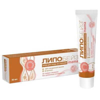 ЛИПОБЕЙЗ® (LIPOBASE®) – дерматологическая косметика на основе ценных натуральных масел для ухода за нормальной, сухой, склонной к атопии и чувствительной кожей. Содержит идеально сбалансированный комплекс природных масел, увлажняющих, смягчающих и успокаивающих компонентов, которые обеспечивают глубокое питание, восстановление кожи, интенсивное и длительное увлажнение, укрепляют защитные функции кожи, повышая сопротивляемость к агрессивным факторам. Все продукты серии ЛИПОБЕЙЗ® (LIPOBASE®) разработаны с учетом особенностей сухой и чувствительной кожи, имеют составы с доказанной клинической эффективностью и одобрены дерматологами. Крем для ухода за сосками ЛИПОБЕЙЗ® мама (LIPOBASE ® mama) специально разработан для ухода за сосками во время кормления грудью. В первые дни и недели от начала грудного вскармливания большинство женщин испытывает болезненные ощущения и повышенную чувствительность сосков и кожи вокруг них. Трещины на сосках могут возникнуть из-за неправильного прикладывания ребенка к груди, особенностей захвата соска, сильной сухости кожи. Для предотвращения таких состояний и быстрого заживления трещин специально разработан крем для ухода за сосками ЛИПОБЕЙЗ® mama. Средство безопасно для младенца. Область применения: Уход за сосками в период кормления грудью. Подходит для частого использования. Активные компоненты: 100% натуральный ланолин — оказывает питательное, увлажняющее, успокаивающее, смягчающее, защитное действие для сухой потрескавшейся кожи сосков. Способствует облегчению болевых ощущений после кормления, помогает устранить сухость, покраснения, раздражения кожи и ускорить заживление повреждений. Плотная текстура крема создает защитный барьер для сосков, что способствует ощущению комфорта. Д-пантенол — стимулирует регенерацию кожи, нормализует клеточный метаболизм, увеличивает прочность коллагеновых волокон. Оказывает регенерирующее действие, питает и смягчает кожу. Способ применения: Вымыть руки перед использованием. После кормления грудью нанести небольшое количество крема на сосок и ареолу, или чаще при необходимости. Нет необходимости смывать крем перед кормлением. Меры предосторожности: Возможна индивидуальная непереносимость отдельных компонентов. Отпуск из аптек: отпускают без рецепта Форма выпуска: Флакон объемом 30 мл. Условия хранения: Хранить в недоступном для детей месте, при температуре от +5 оС до +25 оС Срок хранения: Три года с даты изготовления