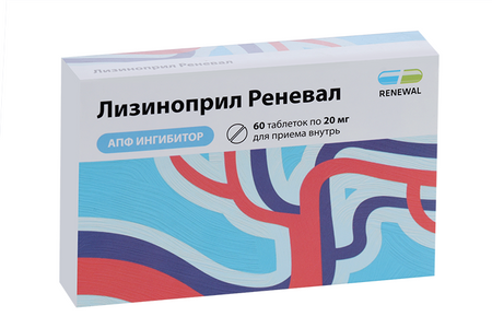 Лизиноприл Реневал 20 мг, 60 шт, таблетки