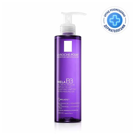 MELA B3 ОЧИЩАЮЩИЙ ГЕЛЬ-ПИЛИНГ ПРОТИВ ПИГМЕНТАЦИИ Микро-пилинг гель для коррекции гиперпигментации чувствительной кожи лица и тела. Эффективная формула сочетает в себе инновационный1 компонент МЕЛАСИЛ и НИАЦИНАМИД для предотвращения и коррекции пигментации, PHA-кислота мягко отшелушивает верхний слой и ускоряет обновление клеток кожи. Гель-пилинг мягко очищает кожу и заметно выравнивает тон и текстуру кожи. РЕЗУЛЬТАТ: Тон кожи выглядит более ровным через 5 недель, пигментные пятна видимо сокращены*. Протестировано под контролем дерматологов и офтальмологов. Эффективность подтверждена клиническими исследованиями. ПОКАЗАНИЯ: Все виды пигментации: пигментные пятна, связанные с воздействием УФ-лучей или возрастными изменениями, пятна постакне, тусклый цвет и неровный тон кожи. ПРИМЕНЕНИЕ: Нанесите на влажную кожу нежными массирующими движениями, затем тщательно смойте водой. Подходит для ежедневного использования утром и вечером. В случае попадания в глаза немедленно промойте их водой. Некомедогенно, гипоаллергенно, подходит для чувствительной кожи. Для снятия макияжа с глаз используйте мицеллярную воду. * Клиническое исследование, 49 респондентов, 5 недель.