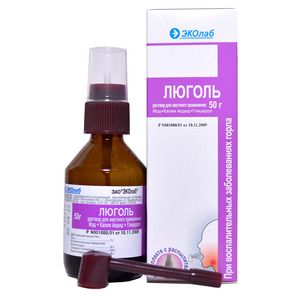 Главная » Аптека Люголя Раствор с глицерином с насадкой распылителем 50 мл Просмотров 14 Прозрачная сиропообразная жидкость красно-коричневого цвета с запахом йода. Эколаб
