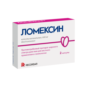 Показания к применениюВульвовагинальный кандидоз, вагинальный трихомониаз.Применение при беременности и кормлении грудьюВ настоящее время данных об эффективности и безопасности применения Ломексина при беременности и в период лактации (грудного вскармливания) не достаточно, поэтому назначение препарата в эти периоды не рекомендуется.ПротивопоказанияПовышенная чувствительность к препарату, беременность, лактация, детский возраст. Препарат нельзя назначать во время менструации.Побочное действиеАллергические реакции: крапивница, сыпь, эритема.Местные реакции: жжение, зуд, раздражение в месте применения препарата. Ломексин, как правило, хорошо переносится, побочные эффекты носят транзиторный характер и не требуют отмены препарата.Состав1 капсула вагинальная содержит:Активное вещество: фентиконазола нитрат 600 мг.Вспомогательные вещества: лецитин соевый, парафин жидкий, петролатум.Состав оболочки капсулы: глицерол, желатин, пропилпарагидроксибензоат натрия, титана диоксид, этилпарагидроксибензоат натрия.Взаимодействие с другими препаратамиЛекарственное взаимодействие препарата Ломексин с другими лекарственными средствами не выявлено.