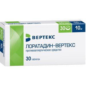 Показания к применениюСезонный и круглогодичный аллергический ринит, конъюнктивит, острая крапивница и отек Квинке, симптомы гистаминергий, вызванные применением гистаминолибератов (псевдоаллергические синдромы), аллергические реакции на укусы насекомых, комплексное лечение зудящих дерматозов (контактные аллергодерматиты, хронические экземы).Применение при беременности и кормлении грудьюЛоратадин не следует применять при беременности и в период лактации.;В экспериментальных исследованиях на животных лоратадин в средних дозах не оказывал отрицательного влияния на плод, при введении в высоких дозах наблюдались некоторые фетотоксические эффекты.ПротивопоказанияБеременность, лактация, детский возраст до 2 лет, повышенная чувствительность к лоратадину.Побочное действиеСо стороны пищеварительной системы: редко — сухость во рту, тошнота, рвота, гастрит; в отдельных случаях — нарушения функции печени.;Со стороны ЦНС: редко — повышенная утомляемость, головная боль, возбудимость (у детей).;Со стороны сердечно-сосудистой системы: редко — тахикардия.;Аллергические реакции: редко — кожная сыпь; в единичных случаях — анафилактические реакции.;Дерматологические реакции: в отдельных случаях — алопеция.СоставЛоратадин 10 мгВзаимодействие с другими препаратамиПри одновременном применении лоратадина с препаратами, которые ингибируют изоферменты CYP3A4 и CYP2D6 или метаболизируются в печени при их участии (в т.ч. циметидин, эритромицин, кетоконазол, хинидин, флуконазол, флуоксетин), возможно изменение концентрации в плазме крови лоратадина и/или этих препаратов.;Индукторы микросомального окисления (фенитоин, этанол, барбитураты, зиксорин, рифампицин, фенилбутазон, трициклические антидепрессанты) снижают эффективность.