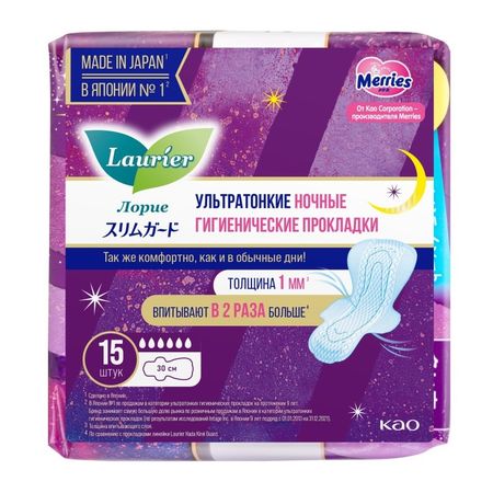 «Ультратонкие гигиенические прокладки с крылышками Laurier Super Slim Guard предназначены для использования в ночное время суток. Благодаря невероятно тонкому впитывающему слою (всего 1 мм) прокладка практически не ощущается на коже. Прокладки обеспечивают безупречный комфорт, надежно прилегают, повторяя форму тела, и подходят даже тем, у кого чрезвычайно чувствительная кожа. Они хорошо впитывают влагу, не липнут к коже и не натирают ее, обладают высокой воздухопроницаемостью. Ими просто и удобно пользоваться во время критических дней. Впитываемость: 6 капель »