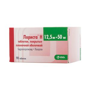 Показания к применениюсимптоматическая терапия болезненных воспалительных процессов различного генеза (в т.ч. послеоперационные и посттравматические боли, ишиалгия, миалгия, радикулит, ушибы и растяжения мышц, ревматоидный артрит, анкилозирующий спондилит, остеоартроз, острый приступ подагры, тендосиновит, бурсит);симптоматическое лечение острого болевого синдрома при воспалительных заболеваниях костно-мышечной системы (только для в/м введения)Применение при беременности и кормлении грудьюМожно назначать вместе с другими гипотензивными средствами.Нет необходимости в специальном подборе начальной дозы у пациентов пожилого возраста. Препарат может повышать концентрацию мочевины и креатинина в плазме крови у пациентов с двусторонним стенозом почечных артерий или стенозом почечной артерии единственной почки.Гидрохлоротиазид может усилить артериальную гипотензию и нарушения водно-электролитного баланса (уменьшение ОЦК, гипонатриемию, гипохлоремический алкалоз, гипомагниемию, гипокалиемию), нарушать толерантность к глюкозе, снизить выведение кальция с мочой и вызывать преходящее, незначительное повышение концентрации кальция в плазме крови, повышать концентрацию холестерина и ТГ, провоцировать возникновение гиперурикемии и/или подагры.Лориста Н содержит лактозу, поэтому препарат не назначают пациентам с дефицитом лактазы, галактоземией или синдромом мальабсорбции глюкозы/галактозы.Влияние на способность к вождению автотранспорта и управлению механизмамиПрактически все пациенты во время терапии препаратом Лориста Н могут выполнять действия, требующие повышенного внимания (например, управление автомобилем или опасными техническими средствами). У отдельных лиц в начале терапии препарат может вызвать артериальную гипотензию и головокружение и, таким образом, косвенно повлиять на их психофизическое состояние. В целях безопасности перед началом деятельности, требующей повышенного внимания, пациенты должны сначала оценить свою реакцию на проводимое лечение.ПротивопоказанияПовышенная чувствительность к лозартану, к средствам, являющимися производными сульфонамидов и другим компонентам препарата, анурия, выраженные нарушения функции почек (Cl креатинина С осторожностью: нарушения водно-электролитного баланса крови (гипонатриемия, гипохлоремический алкалоз, гипомагниемия, гипокалиемия), двухсторонний стеноз почечных артерий или стеноз артерии единственной почки, сахарный диабет, гиперкальциемия, гиперурикемия и/или подагра, отягощенный аллергологический анамнез (развитие ангионевротического отека ранее при приеме других ЛС, в т.ч. ингибиторов АПФ) и бронхиальная астма, системные заболевания крови (в т.ч. системная красная волчанка), одновременное назначение НПВС, в т.ч. ингибиторов ЦОГ-2.СоставДействующее вещество: Лозартан калия, Гидрохлоротиазид (Hydrochlorothiazide)Концентрация действующего вещества (мг): 62,5Взаимодействие с другими препаратамиМеры предосторожности