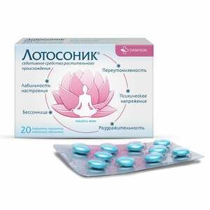 Показания к применениюПри повышенной нервной возбудимости, раздражительности, лабильности настроения.- Непосредственно при эмоциональных и физических травмах.- При состоянии постоянного психического напряжения, переутомляемости (т.н. «синдром менеджера»).- При бессоннице (легкие формы).Применение при беременности и кормлении грудьюПротивопоказано при беременности и в период лактации.Противопоказания Повышенная чувствительность к компонентам препарата. Беременность, период грудного вскармливания. Возраст до 18 лет. С осторожностью применять при остром панкреатите .Побочное действиеАллергические реакцииСоставГустой экстракт из смеси лекарственного растительного сырья: диоскореи корневища (Dioscorea persimilis L.) 183 мг; лотоса орехоносного семена (Nelumbium nuciferum Garth.) 175 мг; лотоса орехоносного зародыши (Nelumbium nuciferum Garth.) 15 мг; туи восточной семена (Biota orientalis L.) 91.25 мг; финика китайского семена (Zizyphus jujube Mill.) 91.25 мг; шелковицы листья (Morus alba L.) 91.25 мг; эритрины листьев (Erythrina orientalis L.) 91.25 мг; эуфории лонганы плоды (Euphoria longana Lamk.) 91.25 мг- Вспомогательные вещества Лактоза, магния стеарат, аэросил, тальк, целлюлоза микрокристаллическая,гидроксипропилметилцеллюлоза, титана диоксид, карбоксиметил крахмал натрия, макрогол 6000,краситель патентованный синий.Взаимодействие с другими препаратамиУсиливает действие лекарственных средств, угнетающих центральную нервную систему (в том числе снотворных), гипотензивных, анальгетических препаратов (требует коррекции их доз).