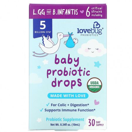 LoveBug Probiotics, пробиотик для детей, в жидкой форме, 5 млрд КОЕ, 10 мл (0,34 жидк. унции)