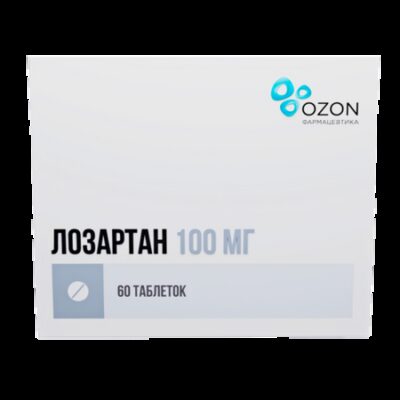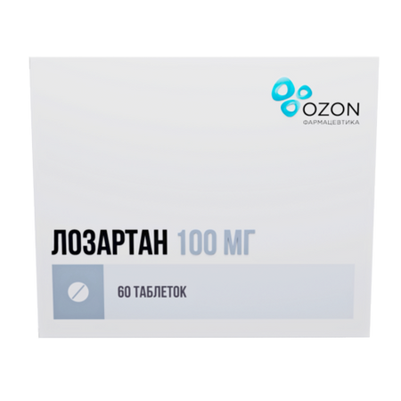 Лозартан 100 мг, 60 шт, таблетки покрытые пленочной оболочкой
