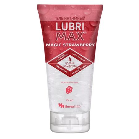 Гель интимный «LUBRIMAX® (ЛУБРИМАКС) Magic strawberry разработан с учетом самых современных требований к интимным средствам: • дополнительно увлажняет, смазывает при ощущениях дискомфорта • сбалансированный рН, благодаря молочной кислоте • не содержит глицерина и красителей • не оставляет следов на одежде и белье, легко смывается водой