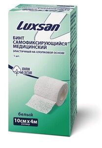Luxsan Бинт фиксирующий когезивный на хлопковой основе 4 м х 10 см белый